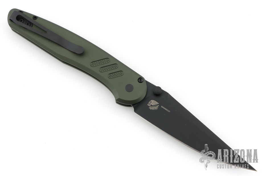 Features a DLC-coated blade and green knurled aluminum handle for a clean, tactical look and secure grip. Smooth manual action, ergonomic design, and solid lockup make it a reliable EDC option.