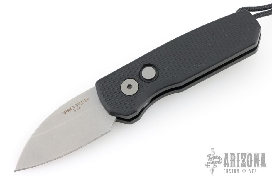 The Runt 5 by Pro-Tech Knives features a tumbled sheepsfoot style blade.  The handle features a black milled aluminum handle with a black tip up stainless steel pocket clip. Comes with original box, pouch, and papers. Has a deep carry clip attached, and regular clip included. Has a couple light scratches, excellent condition otherwise.