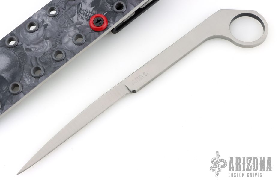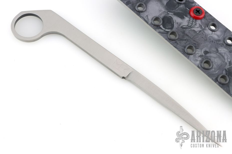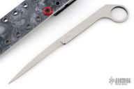 This knife by Charley Morey features a satin finished drop point blade with a full tang construction.  .177" Blade Stock.  .405" Blade Depth.  The handle has a satin finish and 1" ring at the pommel. Includes a black Kydex sheath.  New from maker!