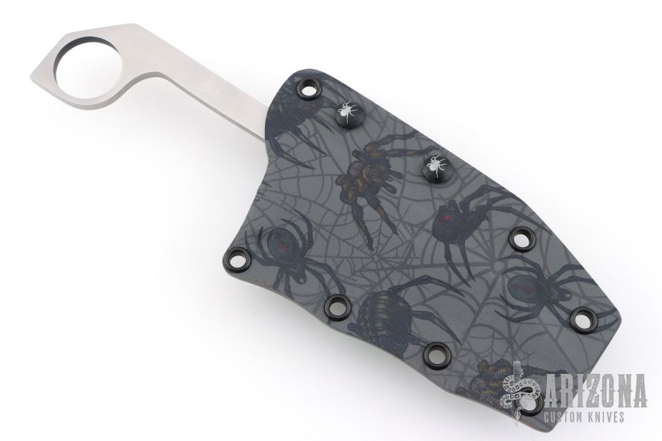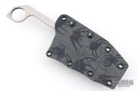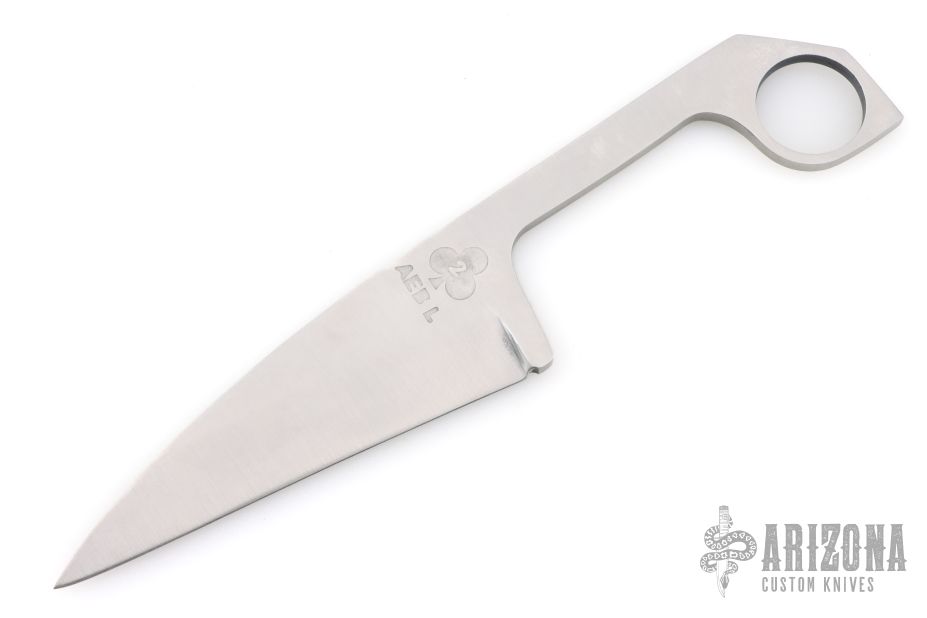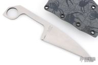 This knife by Charley Morey features a satin finished drop point blade with a full tang construction.  .185" Blade Stock.  1.599" Blade Depth.  The handle has a satin finish and 1" ring at the pommel. Includes a black Kydex sheath.  New from maker!