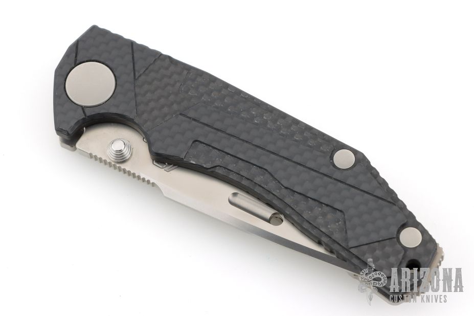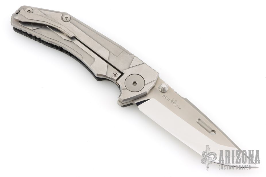 The REN model looks like it will be a winner to comes from the famed Japanese knifemakers. The blade shape is a "Tanto-Honzukuri" or a "Tanto-convex" blade shape. As you know, they are making to the "Tanto" blade shape with the CHI model but this blade shape is "Tanto-Shinogizukuri". That means straight grind. There are only a few knife makers who make this kind of blade shape but, we have never seen a "Tanto-Honzukuri" with mirror polished surface. The handle is a combination of carbon fiber for the presentation scale with a titanium frame lock allowing for excellent weight and balance. It may not look like a Rockstead but we expect the REN to be one of the best performing knives produced anywhere in the world. Includes the Original box and papers #214. Excellent Condition.