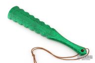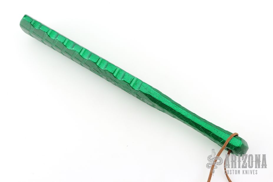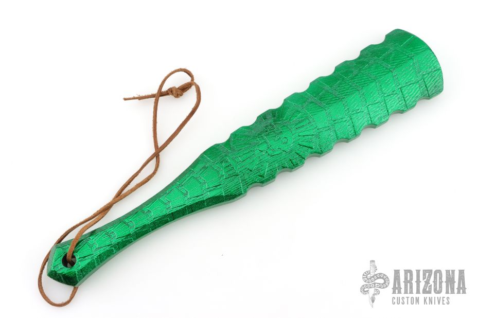 This Bone Breaker features full laser engraved wood construction. Lead filled center, and leather lanyard. Green. Excellent condition.
