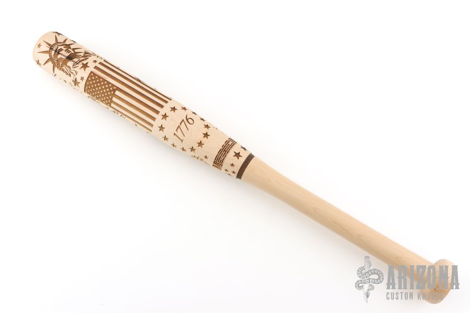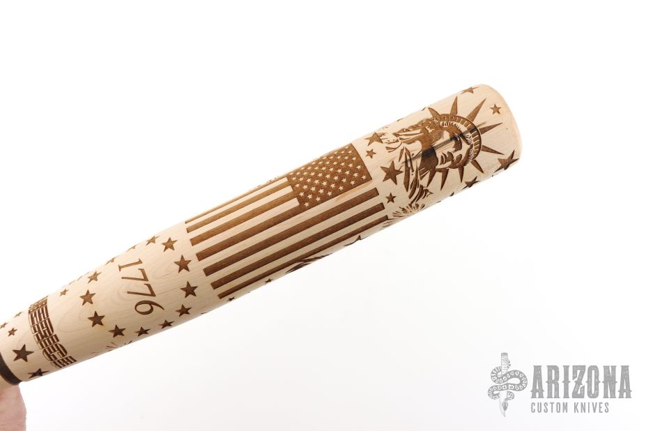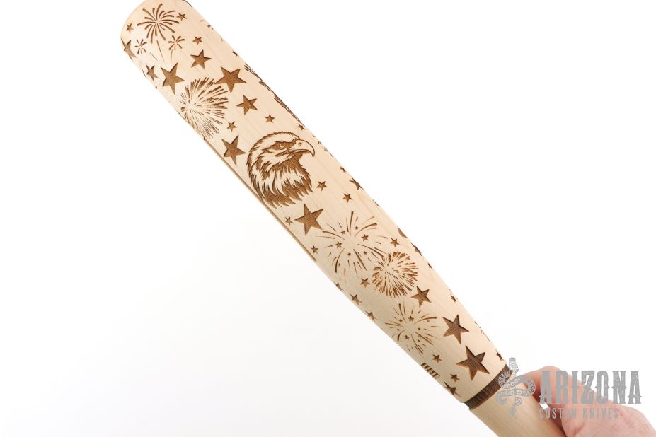 This bat is shaped from a solid piece of maple with a precision Damascus engraving pattern. Made in Tennessee, USA.