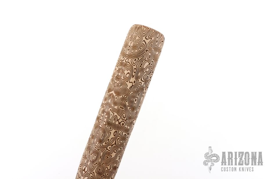 This bat is shaped from a solid piece of maple with a precision Damascus engraving pattern. Made in Tennessee, USA.