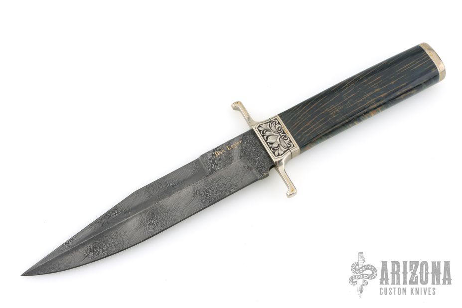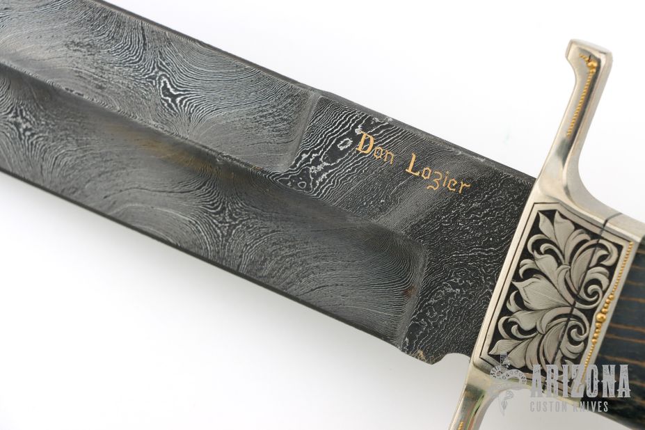 Don Lozier first entered the knife community in 1991. He became a voting member of the Knifemakers' Guild in 1996. Don makes fixed blade knives of his own design using ATS 34, CPM 154, or damascus from Jerry Rados or Mike Norris. He makes daggers, fighters, Persian fighters, hunters, and boot daggers. On double edge pieces his specialty is freehand grinding using either a 1" or 2" diameter contact wheel, resulting in a pronounced spine, radical grind radius, and greater strength at the blade tip. Don's work appears frequently in various knife magazines, knife annuals, hardback books, and on covers. In addition, he has written several articles which were published in Blade magazine and Knives Illustrated. In all, Don's work has garnered 26 awards.