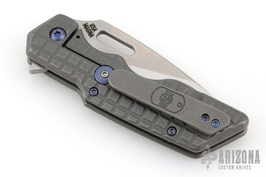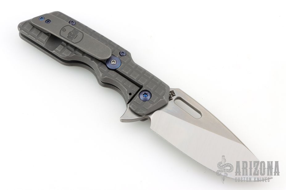 This Medium Mark I Flipper by A2D Mercantile features a hand ground satin (rising grind) finished blade with thumbhole and flipper. The handle has dark stonewashed titanium milled frame, tip up titanium clip, anodized hardware and lockbar stabilizer. Rides on bearings, nice detent, lockup and blade seating. Comes with a zippered case and COA dogtag dated Dec2025. Excellent condition.