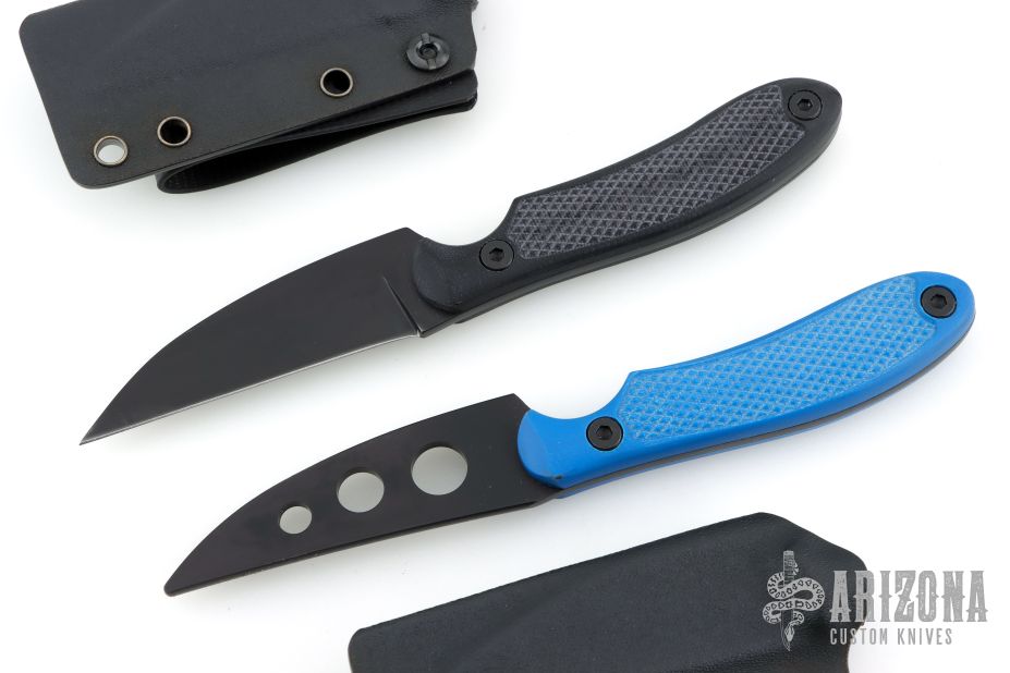 Caution: Blade is on the top side of the knife. The blade is sharp. Do not be an idiot.