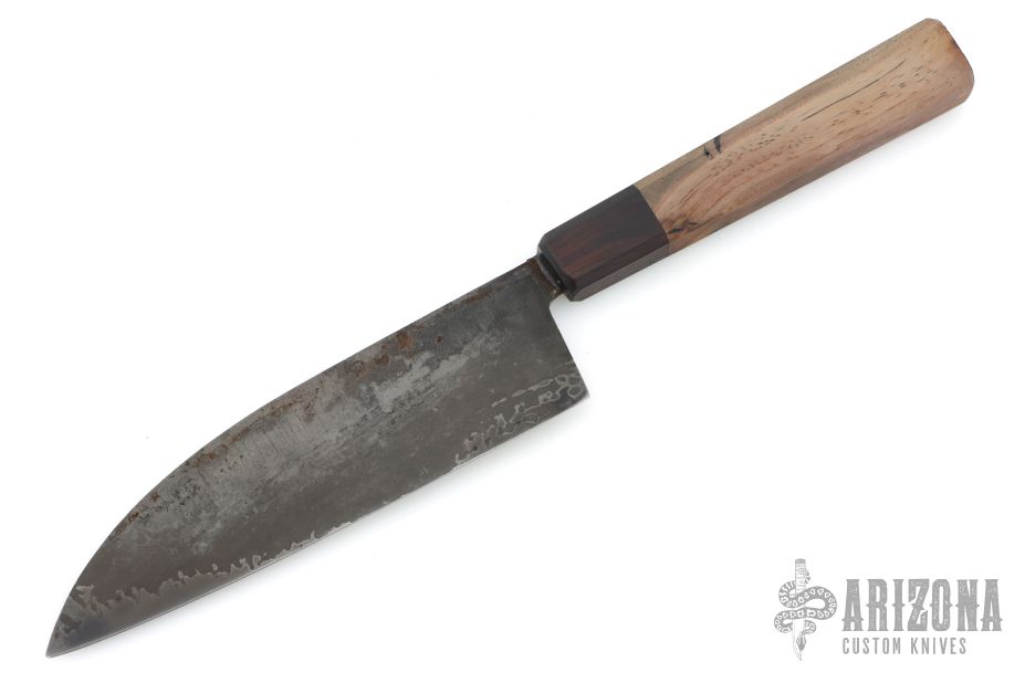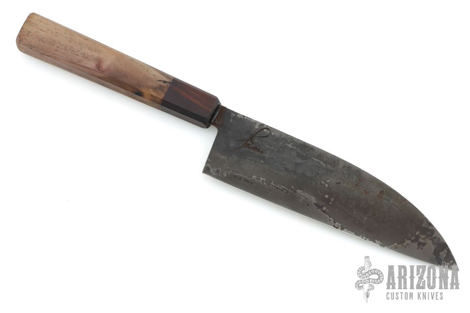 This 7” Santoku features a striking Dark Star Damascus blade, delivering both performance and bold visual character.  .065" Blade Stock.  1.902" Blade Depth.