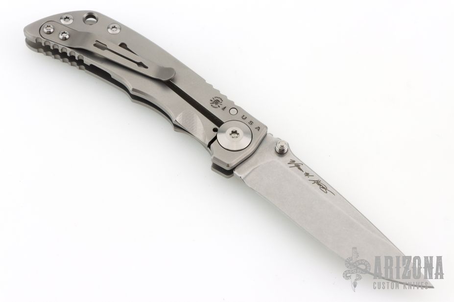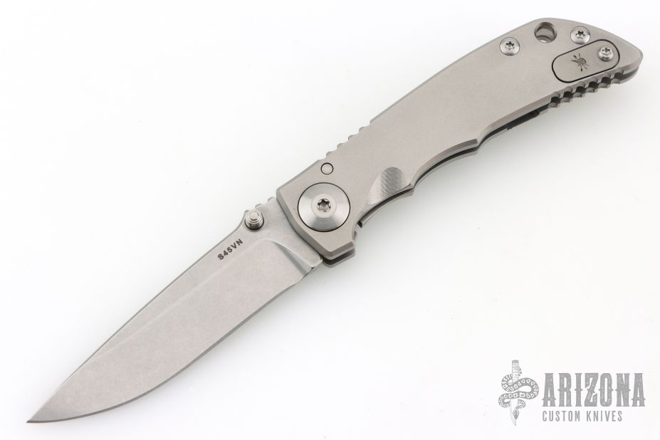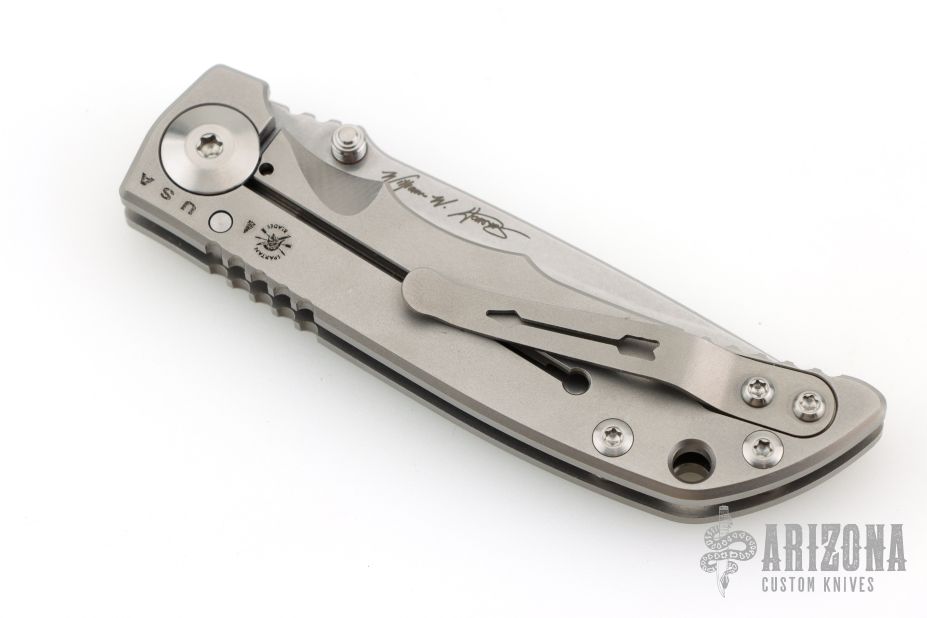 The Spartan Harsey Folder 3.25 “SHF 3.25” This is Spartan Blades latest folder collaboration with legendary knife maker, William "Bill" Harsey Jr. The SHF 3.25 is the knife many of you have been waiting for! A reliable 6AL4V titanium frame-lock knife with a 3.25” blade. Easy to carry and comfortable in the hand; a truly exceptional gentleman's (or ladies) folder. Constructed like its award winning big brother the SHF, the SHF 3.25 is totally made of 6AL-4V titanium, except the pivot, blade and stop pin. This medium-sized folder has a reversible pocket clip and dual thumb studs allowing for left and right hand carry. If you are looking for a high quality and well-designed folder this is one you should strongly consider! Comes with the original box. Excellent condition.