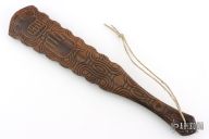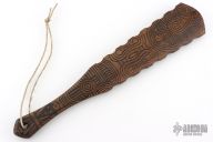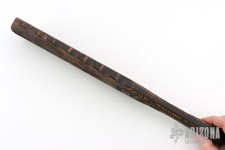 Straight from Ryan's shop is his War Stick, similar to the Macuahuitl (don't ask us how to pronounce it) war club coming in at 16.5 inches long! Perfect for all your smashing and bashing needs, his War Stick is constructed from Hickory with a Death Cult motif down the body and given a natural finish. The main body tapers to a more than generous handle with a pommel for a secure grip with ornate beads. These War Sticks are not for the feint of heart!