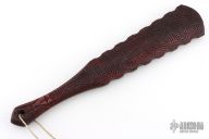 Straight from Ryan's shop is his War Stick, similar to the Macuahuitl (don't ask us how to pronounce it) war club coming in at 16.5 inches long! Perfect for all your smashing and bashing needs, his War Stick is constructed from Hickory with a red stained finish and a Death Cult motif down the length of the body. The main body tapers to a more than generous handle with a pommel for a secure grip. These War Sticks are not for the feint of heart!