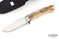 "I started making knives in 1985. I use the stock removal method. I also discovered the wonderful world of forged knives, I also started making full integrals using a milling machine. I usually have all three types at the shows I attend and I use most common steels. I do my own heat treating and like to use handle materials like stag, ivory, wood, micarta, sheep horn, and others. I make my own sheaths individually for each knife."