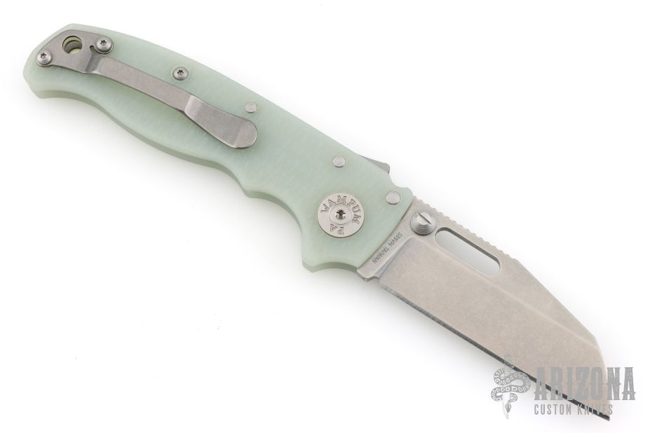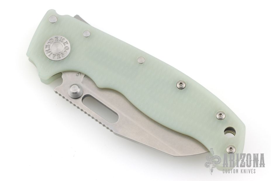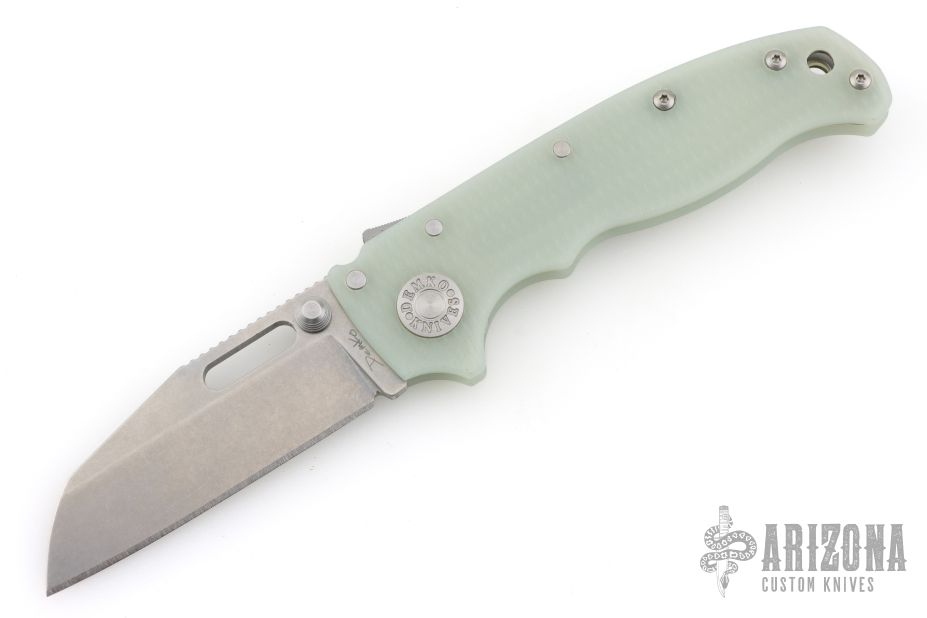The AD20.5 by Demko Knives features the impressive Shark Lock and an even more impressive price point. The Shark Lock mechanism is situated on the spine of the knife and operated with a ramp-like ‘fin’, allowing you to flip the blade open and closed at will. It's probably the best thing about this knife and design, how quickly it can be deployed and ready for action. It acts as a blade launcher and a little wrist action is all it needs. Comes with original tube with extra clip. Excellent condition.