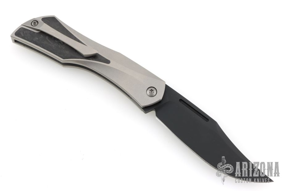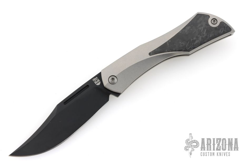 Celebrated knife maker Elijah Isham is kicking off his production line with the Blackstar Slip Joint folder. This model is equipped with a classic bowie blade and a titanium handle with carbon fiber inlays. The Blackstar offers a compact and stylish design that is perfect for your everyday carry rotation. An integral flipper tab provides satisfying deployment and low-profile carry. Pick up a sleek and affordable slip joint design with the Isham Bladeworks Blackstar. Features: CPM-20CV steel provides added blade strength and wear resistance. Ambidextrous deployment with a tang flipper or nail nick. Item includes a titanium pocket clip for tip-up carry. Comes with original box and zippered case. Excellent condition.