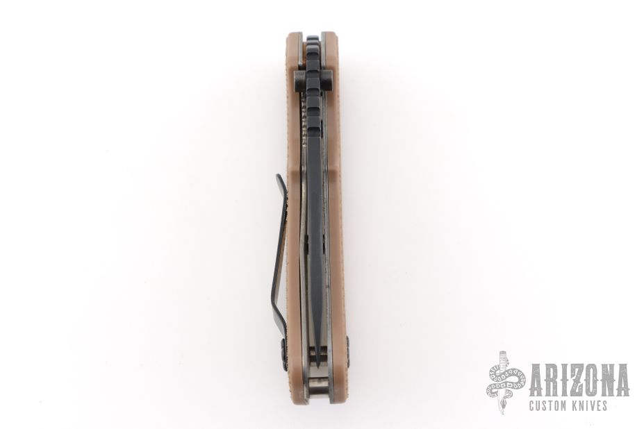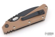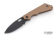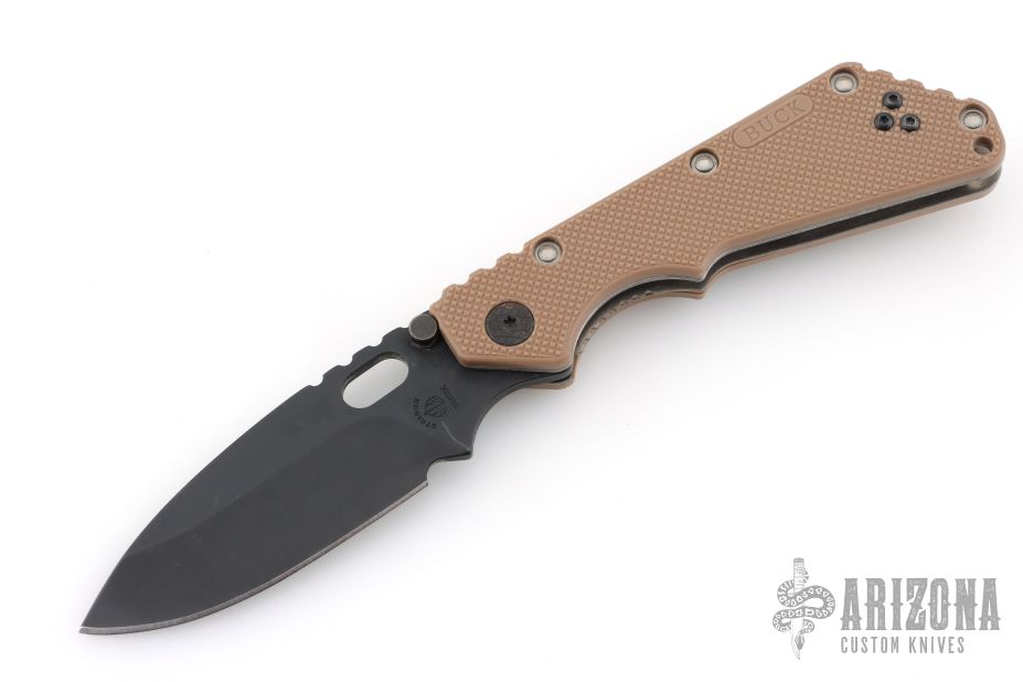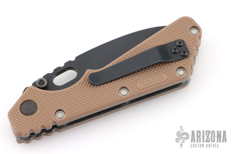 This is a Buck made Strider SNG with black coated blade and black scales, stainless steel liners, black coated stainless steel tip up reversible carry clip. Notched thumbrest area and front/rear of handle provide a solid grip. Includes the original box.  Excellent Condition.