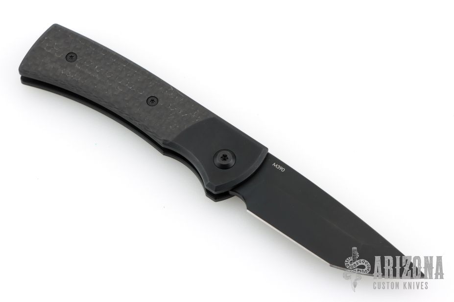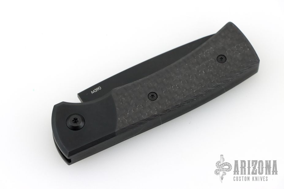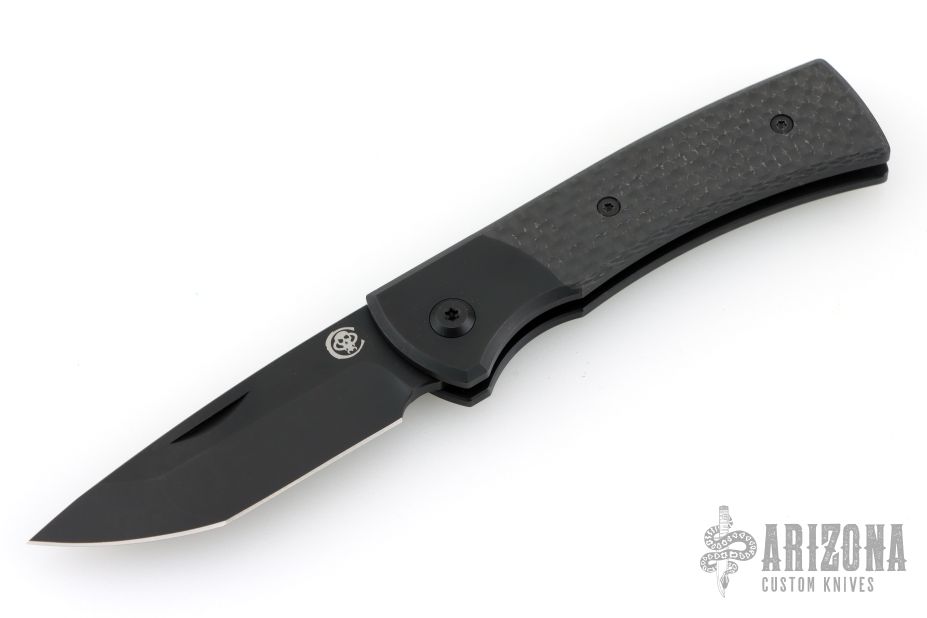 - YKWII: Basket weave carbon fiber scales / black stonewash anodized frame / black stonewash PVD blade