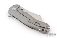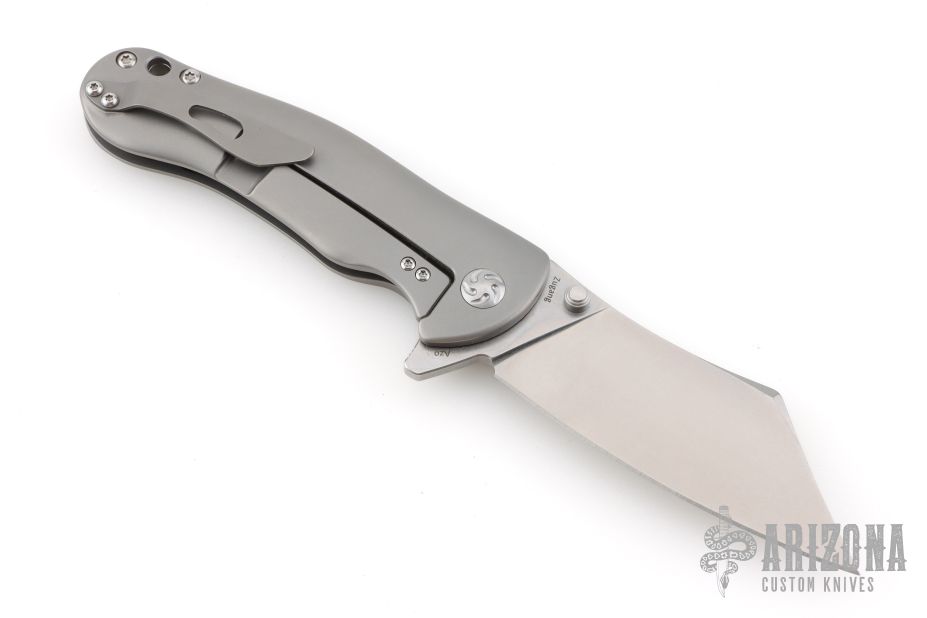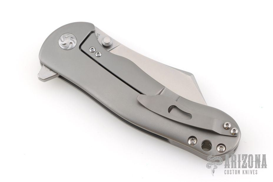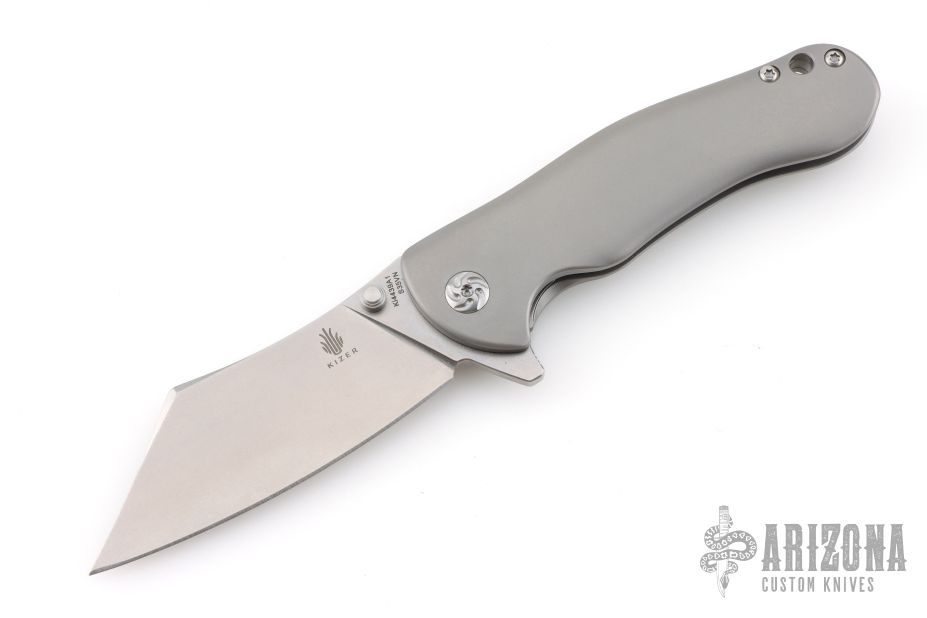 The Kizer Zugang offers titanium construction and a unique collectible design. It is equipped with an ergonomic titanium handle and a wharncliffe style blade made from CPM-S35VN stainless steel.  The handle has a titanium frame with a backspacer and tip up pocket clip.  Includes the original box and papers. Has a couple light scuffs. Excellent Condition.