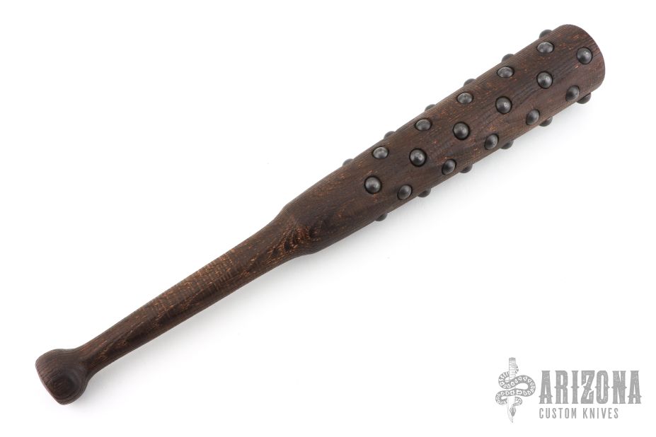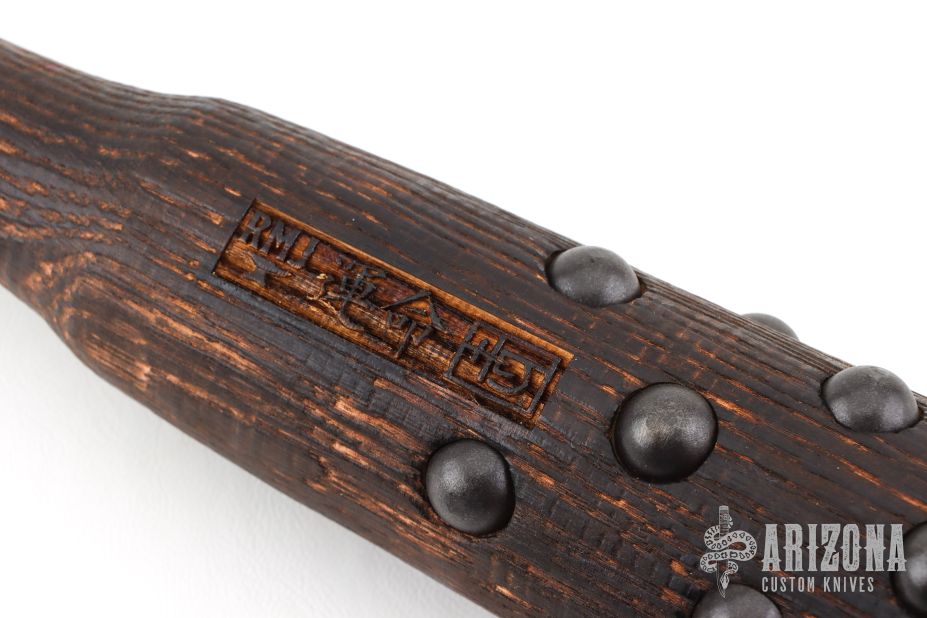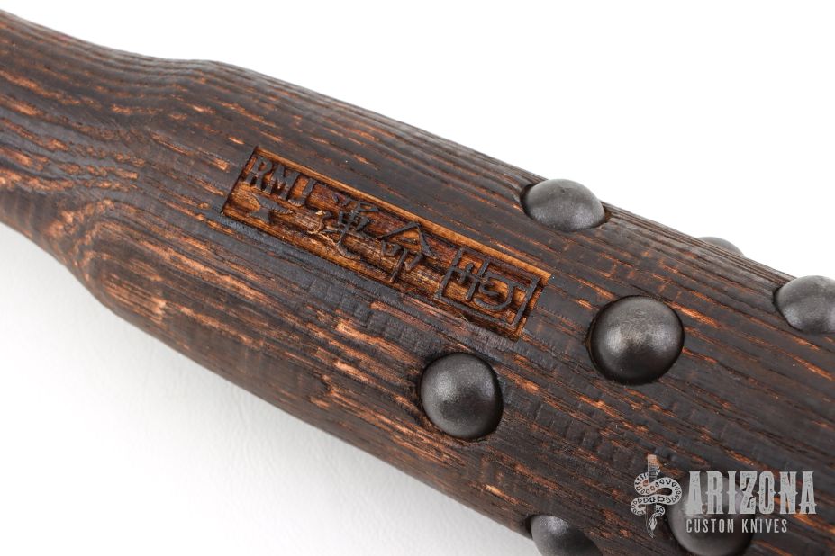 Tetsubo War Club by Ryan Johnson. Gold Point Forge, full hickory construction, hand inlaid rivets. Heavy and 3.125" in diameter. New condition.