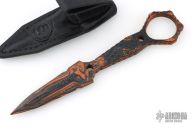 Loads of time went in to this knife Design. Nathan Murr pressed me repeatedly to design a Ring knife and this is the end result. It has all the ergonomics and aesthetics you have come to expect with a Bawidamann Product. The Offset Fishnet handle pattern is Classic and Sexy AF. The significant feature is the faceted "Tear Drop" shaped ring allowing a larger finger in a smaller ring area. Because it is faceted you can get good purchase on the outside of the ring and run the knife without having an index finger in ring.
