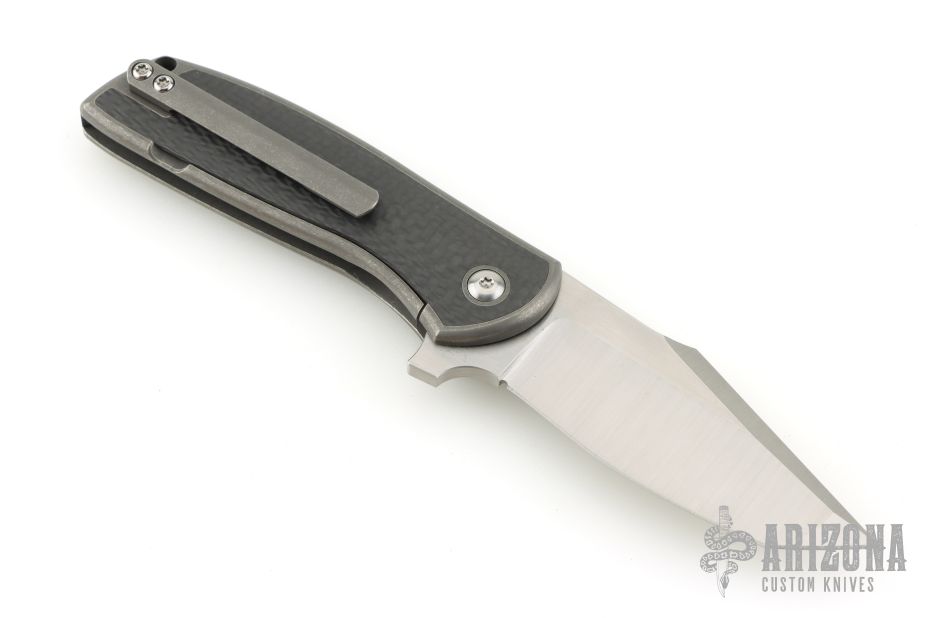 The Angry Baby Bear by Alliance Designs is a solid EDC performer, designed with Ray Laconico's distinctive minimalist design style. This model sports a satin finished blade and a dark stonewashed frame with matching tip up pocket clip and carbon fibber inlays. Clean lines accentuate the smooth contoured handle, which rests perfectly in the hand for comfortable use. Comes with original zipper case. Has some light scuffs and scratches, otherwise excellent condition.