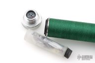 The handle includes a bead-blasted stainless steel double guard equipped with both flathead and Phillips screwdriver tips, a hollow cord-wrapped grip, and an aluminum removable butt cap. The butt cap houses a compass and features an O-ring seal for waterproof storage, staying true to the original survival design.
