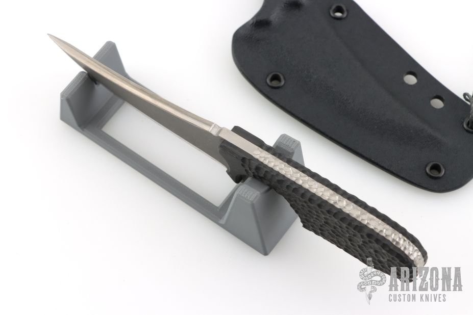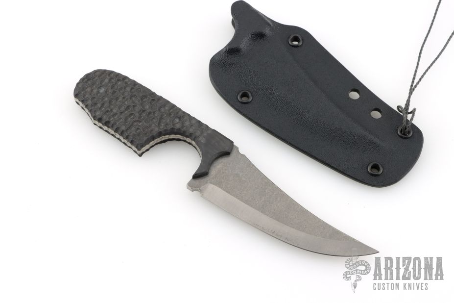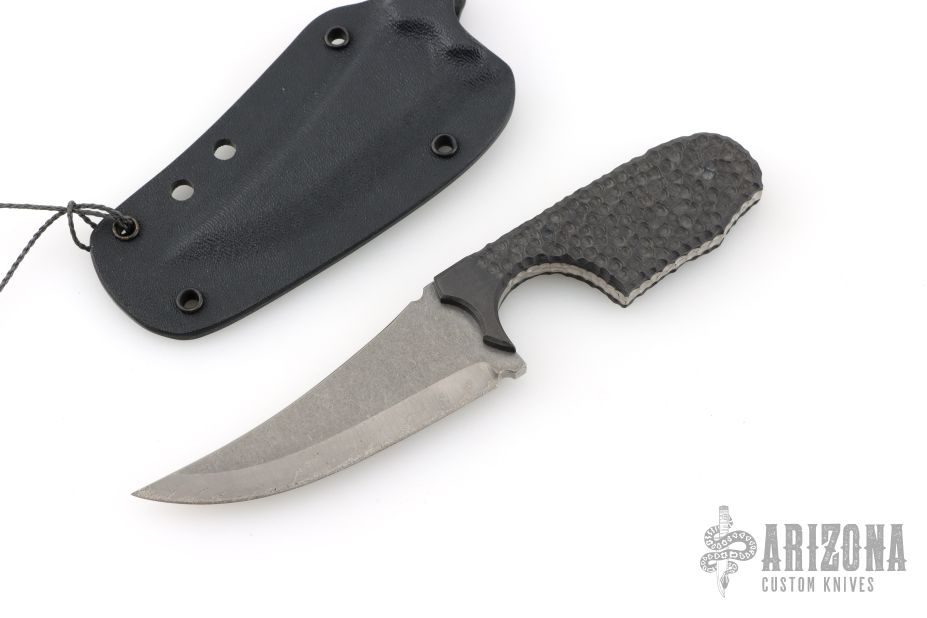 This Impulsio Stealth Fighter by Special Circumstance Inc is a TAD Edition. It features a stonewashed titanium blade with carbidized edge, .161" blade stock and 1.174" blade depth, full tang construction. The handle has stippled carbon fiber scales. Comes with a Kydex sheath. Has some light scratches, otherwise excellent condition.