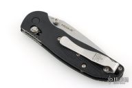 This Doug Ritter Mini RSK by Hogue Knives features a stonewashed blade with notched thumbrest and dual thumbstuds. The handle has milled black G-10 scales with a stainless steel tip up reversible clip. Comes with original box, zipper case, and papers. Excellent condition.
