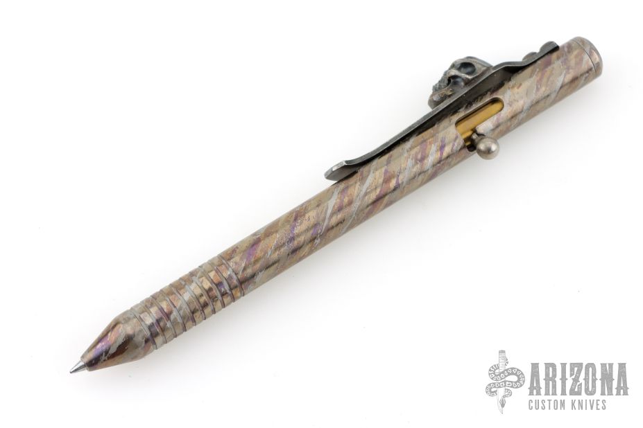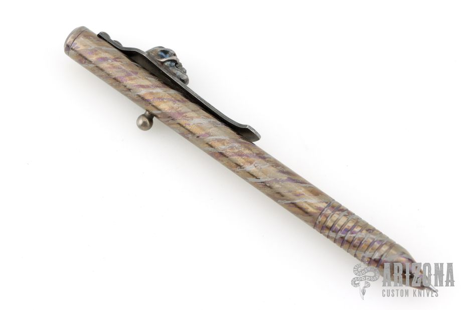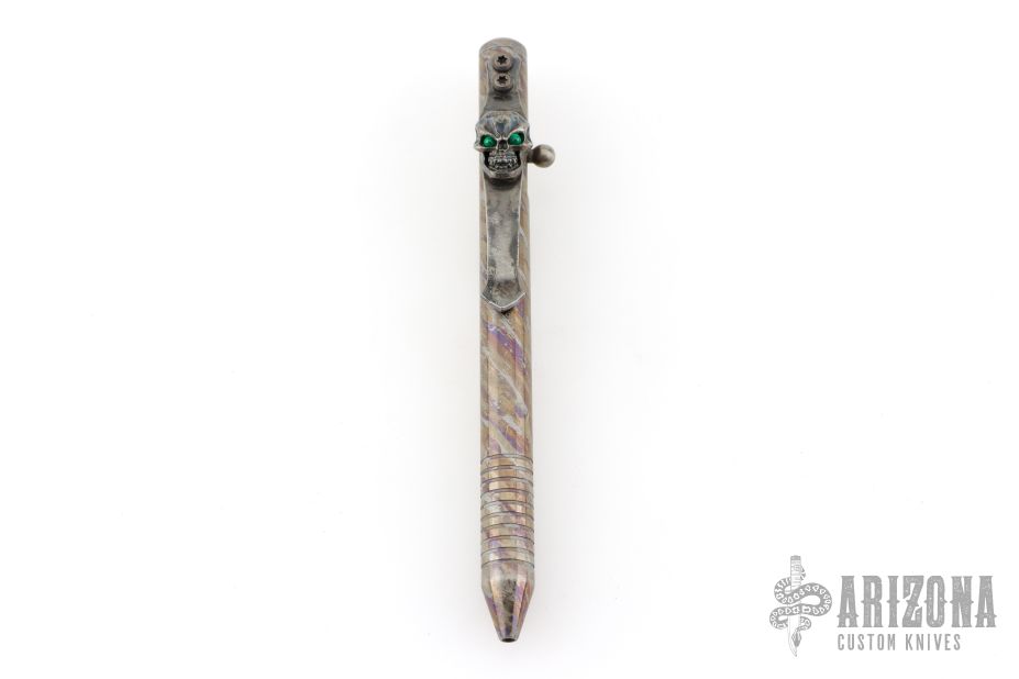 Custom Finished TiBolt Pen w/ SF Vigilant Hardness Skull Clip w/ Emerald Eyes, customized by Captain Axel. Excellent condition.