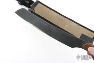 The 14-1/8" blade is made from 1095 Cro-Van steel with a flat grind and an edge angle of 20 degrees. The blade comes extremely sharp right out of the box... trust me. The Adventuregrip handle is made up of two textured Zytel scales, which provide great grip and hand feel. The length of the handle also allows for a couple of different grips depending on your current task. Weighing in at just less than 21 ounces, the Parangatang feels nicely balanced and should make for a comfortable item to carry and utilize in the field. We really like how the slim blade doesn't compromise mobility with unnecessary broadness. It's made in the USA and comes with a MOLLE compatible sheath. Overall, the KA-BAR Parangatang is an impressively balanced offering. It should make an ideal companion out in the field.