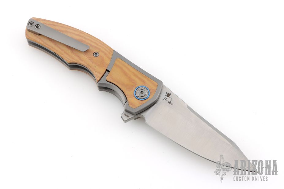 "I believe that in order to make a superior knife you must use superior materials. That is why I work with top grade, high-tech materials. The steels I generally use in my folders and fixed blades are CPM S30v, CPM 154 CM, BG-42, and Damasteel. The handle materials I mostly use range from G-10, Micarta, and carbon fiber to mother of pearl and fossilized mammoth ivory. I exclusively use 6al/4v titanium for the liners in my folders. I mostly make my bolsters from materials such as 6al/4v titanium, damascus, carbon fiber, timascus or mokume. When making Japanese style blades I generally use 1050, 1084, or L6. The handles will usually consist of a phenolic handle covered in stingray skin then wrapped with a nylon cord that has been impregnated with resin to give it maximum strength, toughness, and longevity. I am constantly striving for perfection in creating, for what I feel is one of the highest quality knives on the market today."