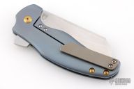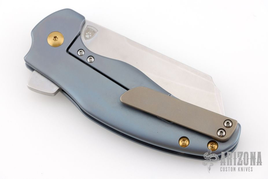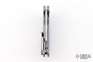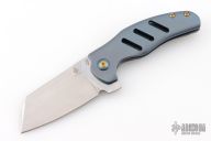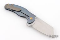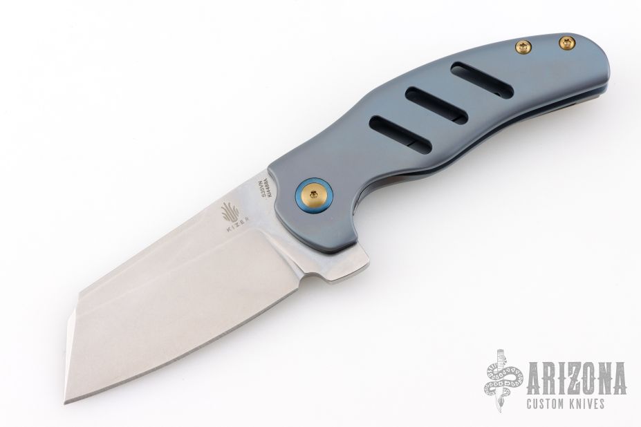The Kizer C01C features a heavy-duty cleaver design from Chris Conaway of Sheepdog Knives. Its large sheepsfoot style blade is made from premium CPM-S35VN stainless steel with a stonewashed finish. The blade deploys effortlessly on a smooth ball bearing pivot, and locks up solid. Contoured titanium handle scales provide a comfortable grip and a resilient build. This knife offers a remarkable combination of tactical functionality and a refined, stylish appearance.
