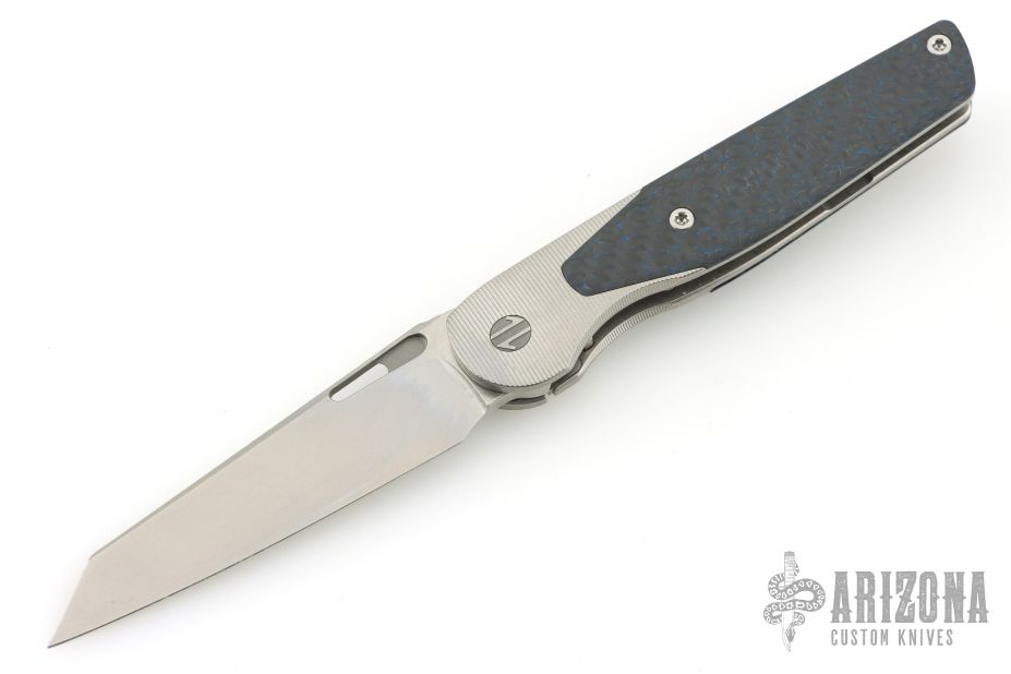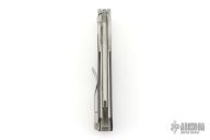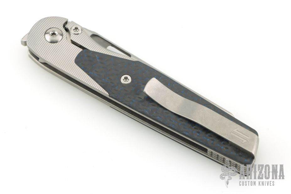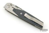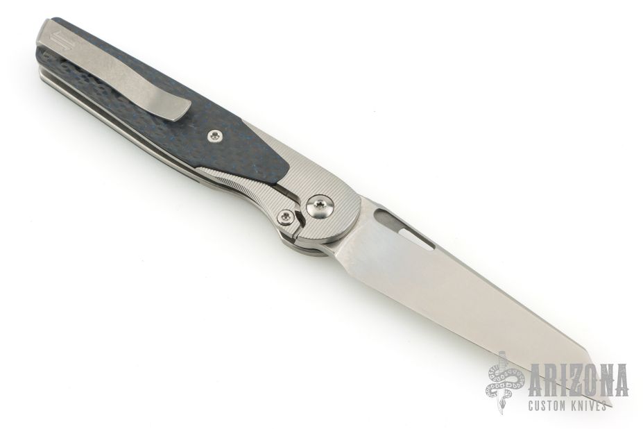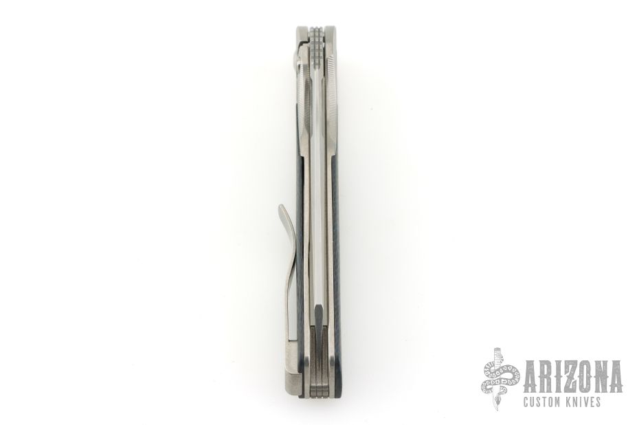 This Cortex by Brown Knives features a clip point stonewashed blade with notched thumbrest and flipper. The handle has a milled titanium frame with integral bolsters, carbon fiber scales, milled titanium backspacer and tip up clip with hidden screws. Rides on bearings, nice detent, lockup and blade seating. Comes with original box and COA #025. Excellent condition.