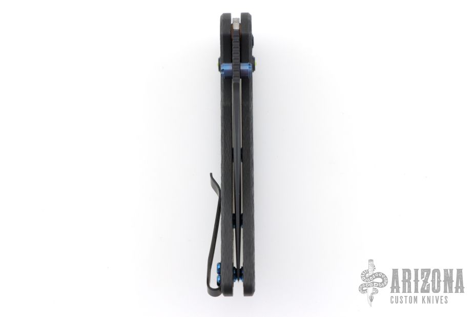 This Deka folder features carbon fiber handles. The ambidextrous blade is easy to deploy thanks to the included thumbstuds. The knife comes with the ABLE-Lock system that secures the knife while open or closed. This version has the clip point blade with a black cerakote finish. Black stainless steel tip up reversible pocket clip. Includes the original papers and zipper case. Has a couple light scuffs, Excellent condition.