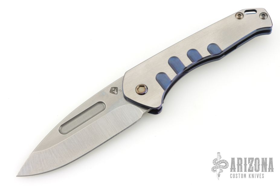 This knife has all the style of our rescaled Praetorian knives but is amongst the slimmest in the business. It truly disappears in the pocket. With 1/8” thick slabs for the handles and blade this knife can cross over between work jeans and dress pants. Shorts??? No problem. This knife is light but punches way above its weight. Perfect for the blade-slinger that wants to carry darn near everywhere and likes his knife to make a quiet statement. Slim, light, tough and ready to be used all day long. Comes with original box and hard case, and COA dated Feb 24, 2022. Excellent condition.
