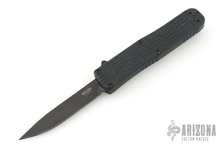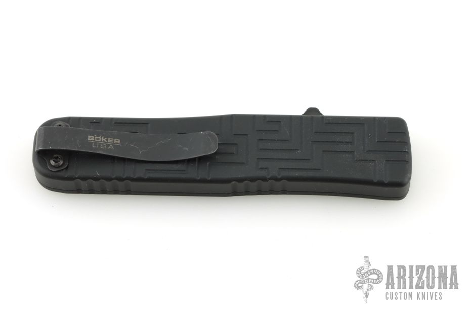 There's always a great fascination in a high quality "out the front" (OTF) automatic knife. The fast, straightforward action when opening or closing the blade is unique in the world of knives. For this purely US-based project, Boker teamed up with Hogue knives from Nevada and created these extraordinary OTF autos. The great experience of Hogue with this specific technique, together with Boker's long-time experience with switchblades for the international market, brought out an amazing knife which is extremely reliable and ready at hand whenever you need it. The massive aluminum handle is CNC-milled and equipped with a traction pattern which enhances a safe and comfortable grip. The blade is made out of 154CM steel and combines sturdiness with a high edge retention. The reversible steel clip keeps the Boker Plus OTF close at hand, in your pocket or on your gear. Fully manufactured in the USA.