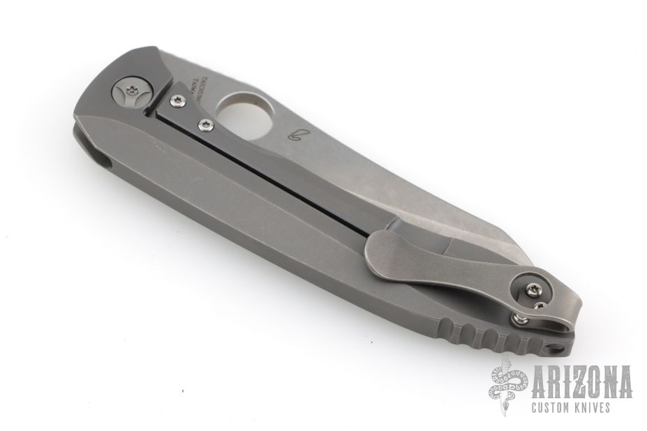 The Spyderco Paysan is an exciting Peter Rassenti custom collaboration. Revealed at SHOT Show 2018, the Paysan features an integral frame lock design with a lockbar insert and over-travel stop. The S90V blade sports a tall grind to deliver high-performance cutting action, and rides on a smooth ball bearing pivot. It's built with a single-piece titanium handle that has been countered perfectly for an ergonomic grip. A stainless steel clip finishes off the stunning Rassenti design. Comes with spyderco zipper case and papers. Excellent condition. Has a deep carry titanium clip.