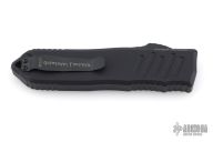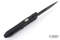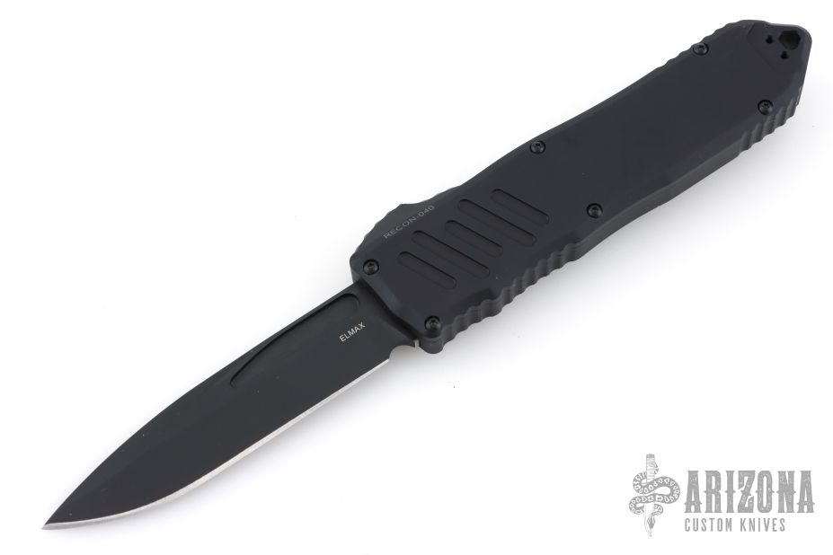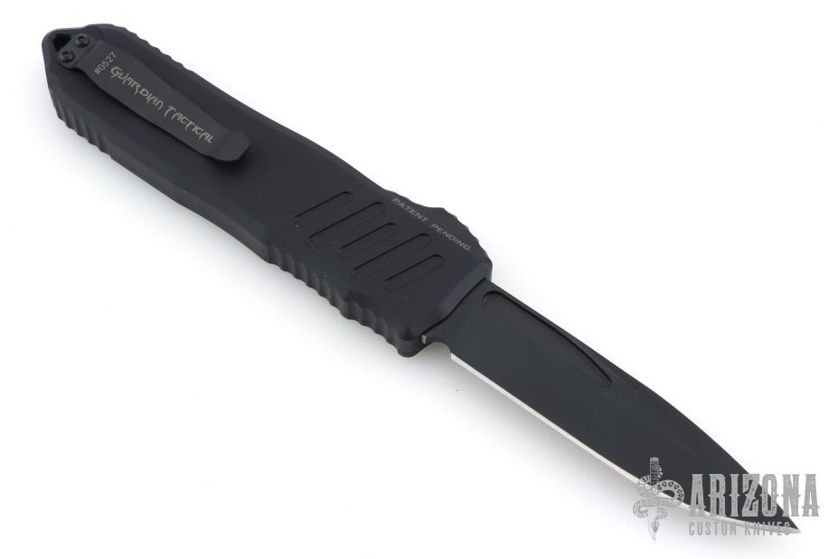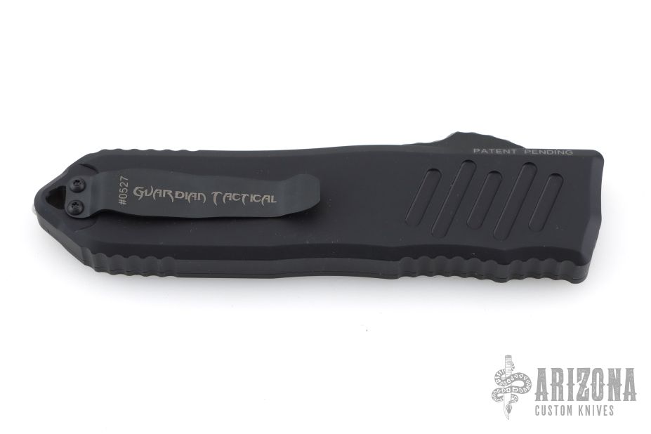Add a state of the art OTF automatic to your rotation with the RECON-040 from Guardian Tactical. This RECON model is built with a black blade and a black anodized handle and hardware. Guardian Tactical's patented OTF mechanism provides smooth, responsive opening action. The unique thumb slide design is separated from the aluminum handle by a steel plate and 3 ceramic balls that eliminate grinding and wear. An innovative locking mechanism sits off to the side of the blade channel so it doesn't drag against the blade when opening and closing. These features eliminate the friction on the blade and button that have always plagued OTF knives. Features: Anodized aluminum handle is compact and lightweight for durable everyday carry. Innovative OTF mechanism offers fast and smooth opening action for responsive tactical deployment. Item includes a stainless steel pocket clip for secure tip-down carry. Comes with original box. Excellent condition. #0527.