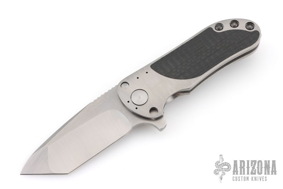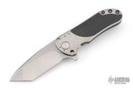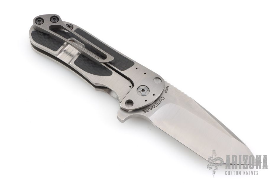 This T95 Flipper by Direware Knives features a satin finished tanto blade with swedge, notched thumbrest and flipper. The handle is comprised of a titanium frame with carbon fiber inlays, notched titanium backspacer with a machined titanium tip up clip. Dead center blade seating, crisp detent and solid lock up. Includes a zipper case. Has a couple light scuffs, excellent condition otherwise.