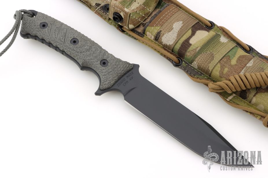 "Continuing the proud tradition of Chris Reeve Knives honoring elite military, the Reeve/Harsey collaboration - the Pacific - is the civilian version of a knife created to celebrate the 50th Anniversary of 1st Special Forces Group. Based in Ft. Lewis, WA, 1st Group's theatre of operations is Asia and the Pacific, so the name Pacific has been chosen to honor the home and work place of these fine soldiers." This knife has a clip point blade with .224" blade stock and 1.405" blade depth, full tang construction with canvas micarta scales. Comes with camo nylon spec-ops sheath. Comes with original box and papers dated July 27, 2022.  Excellent condition.