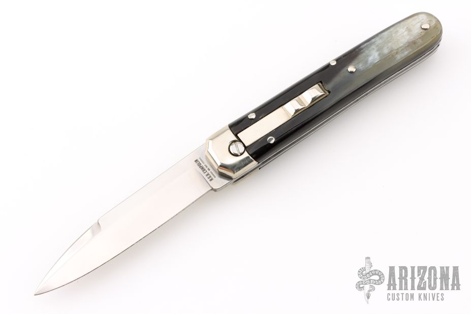 Angelo Campolin Sr. was born in 1923 in Maniago, Italy. He worked on perfecting his knife making skills before WWII and at this time made his first switchblades. After the war, in 1947 he started his company and made 30 stilettos with the marking “Angelo Campolin”. In the 1970’s Angelo’s son Gianni started to work in the company and they were specializing in folding hunting knives and also manual folding stilettos for the Robert Klaas company in Solingen Germany with their Kissing Cranes mark. In 2002 American switchblade collectors Dan Fuller, Brad West, and Tim Zinser were visiting Maniago and enjoying a few glasses of wine in a bar with Angelo Jr. and Gianni. The discussion was about a new name for some knife projects they wanted to pursue. It was Brad West that suggested the tang stamp should be AGA, for Angelo, Gianni, Angelo, thus representing three generations in the knife making business. The Campolins liked it and it stuck. In the beginning it was just a few items, but grew to the point where now there are 12 models and different scale options. The goal has been to offer quality switchblades using the old methods and traditions. Being a collector himself, Angelo Jr. knows what others like. The company headquarters has moved to Austria with production still in the original Maniago shop, as well as the others in Maniago that produce the knives for A.G.A. Campolin.