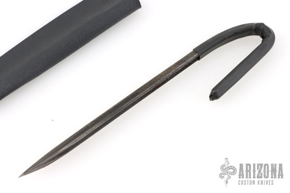 This Cane spike is made from a triangular piece of steel with heat shrink rubber wrap. Comes with a Kydex sheath. New from maker.
