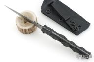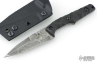 This Huginn Dagger by Bawidamann Blades was named after Odin’s Raven. It features an Acid Etch Sinew Silver Smoke finished blade with sharpened top edge and notched thumbrest, .100" blade stock and 1.208" blade depth, full tang construction. The handle has IM Bawidamann Chunked Pattern Carbon Fiber scales (proprietary Carbon fiber composite). Comes ready to carry with the Bawidamann Uberscabbard. New from maker.