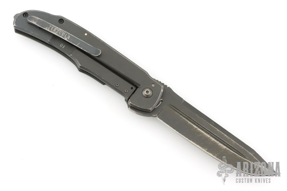 Bob Terzuola was born in Brooklyn, New York and attended New York University. Upon graduation in 1967 he went to Panama as a Peace Corps trainer and later became a jade carver and gemologist in the Motagua River Valley, Guatemala. In 1979, Terzuola began making knives and joined the Knifemakers' Guild in 1981 on an endorsement from Bob Loveless. Terzuola's first knives were fixed blade designs made for soldiers in Guatemala. Later that year moved to New Mexico and began making folding knives. Seeing a need for a knife that could be carried discreetly, he developed a model featuring black micarta for the scales and bead-blasted titanium bolsters. Innovations in desgin for which he coined the term "Tactical Knife". Bob attends many of the largest and well known custom knife shows across the world. Bob Terzuola Knives are known for their trademark design and high quality workmanship. Terzuola's most popular model is the ATCF, a folding knife design. This was his first tactical folding knife, although he also makes it with non-tactical materials. Other knife models that Bob Terzuola is popular for are the 3A, TT-1, Model 7, Eagle Rock 514, TTF3A, Model 26, Starmate, TTF3B, Pathfinder, Century Starfighter, Starmate, Battle Guard, TTF6, Model 18 Combat Master, WEE T, and Battle Mate, just to name a few. Bob Terzuola also designed a very popular knife for Spyderco, the SLIPIT. The SPLIT is made of the finest non-locking tactical folders on the market. Bob Terzuola has authored a book about the design of tactical knives named, 'The Tactical Folding Knife.' When you hear people say that Bob Terzuola literally wrote the book on tactical folding knives, he really did! Many custom tactical knifemakers have his book in their shop, and highly value his opinions and designs. Bob Terzuola has also authored articles about tactical knives and knifemaking for Blade, Soldier of Fortune and other publications.