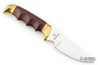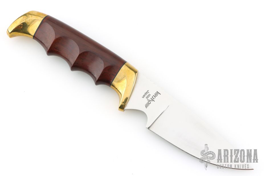 This Model 1030 Deer Hunter by Kershaw Knives features an etched satin finished drop point blade with notched thumbrest, .157" blade stock and 1.135" blade depth, hidden tang construction. The handle is comprised of brass guard and pommel, steel spacers and hand contoured phenolic handle over hidden tang construction. This model has been discontinued. #482/500 Comes with original wood box, and papers. Excellent condition.