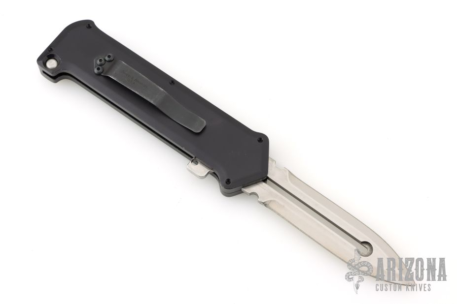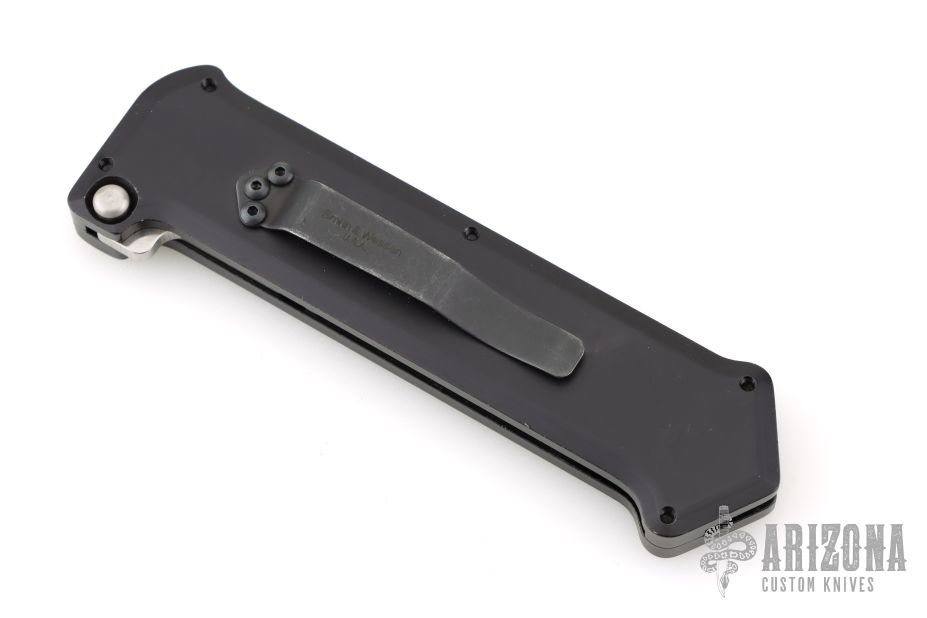 This Extractor by Smith and Wesson features a polished double-edged blade. The handle has a black anodized aluminum frame with tip down pocket clip.  #9903036. Has some light scuffs on the pocket clip otherwise the knife is in Excellent condition.