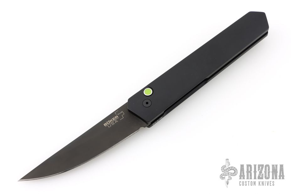 This Kwaiken Auto is a collaboration between Boker, Lucas Burnley and Pro-Tech Knives. It features a black 154CM blade. The handle is black aluminum with a black stainless steel tip up clip and green G-10 inlaid push button. Comes with original box (pretty beat up). This knife came from the 2018 USN Gathering and is #12 of 100. Has some light scuffs, excellent condition otherwise.