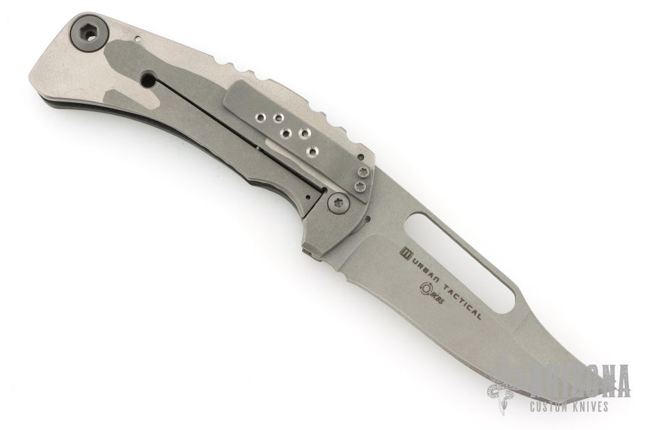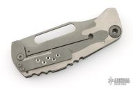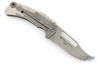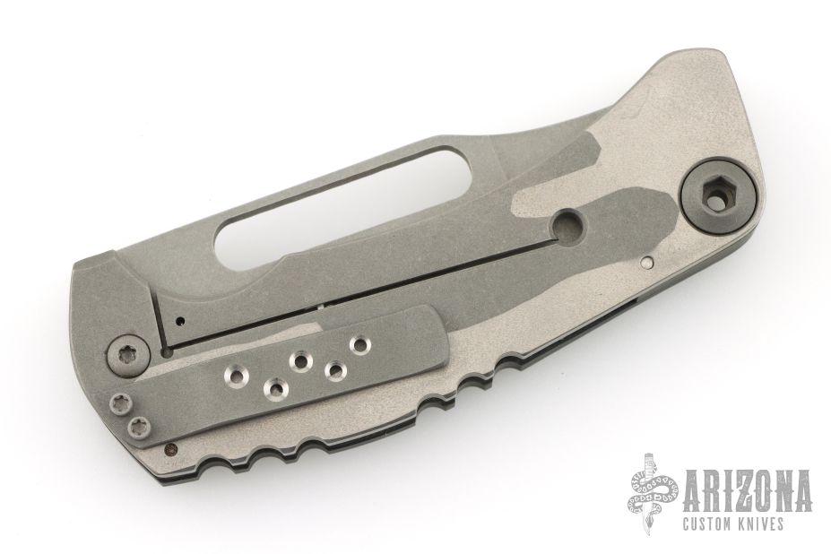 This Framelock by Mikkel Willumsen features a bead blasted blade with a long thumbhole. The handle has a sculpted G10 and titanium frame with a matching tip down pocket clip. Includes a padded zippered case. Excellent Condition.