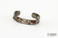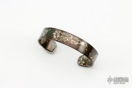 This bracelet has a 7/8" opening and is 2 1/4" accross. Brand new from the maker at the 2013 Blade Show.