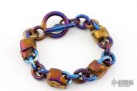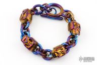 This Skull Bracelet from Dmitry Streltsov features anodized and textured skulls and rings. 10.5 inches overall length.