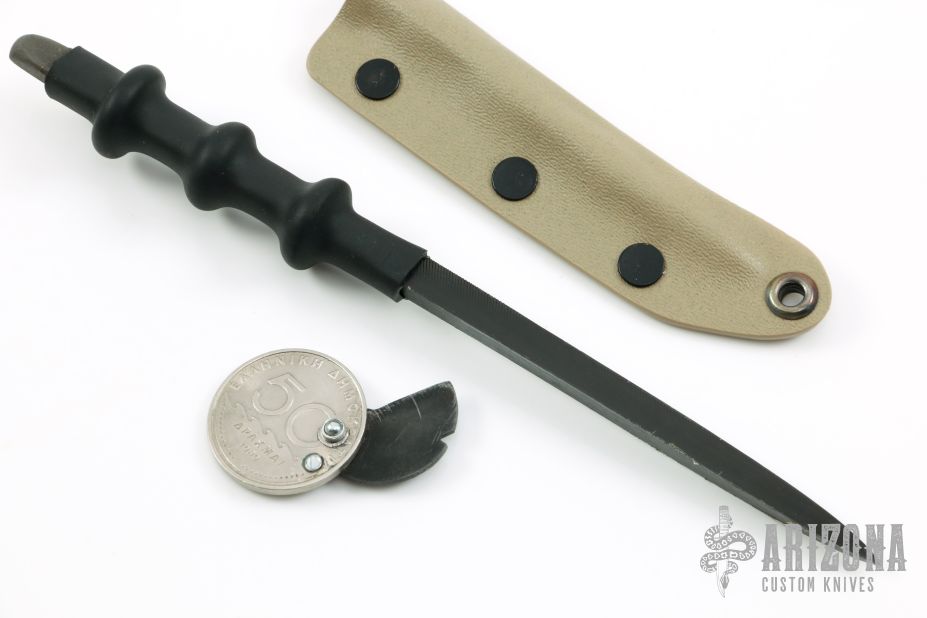 This SOE set by GHK features a black oxide spike made from an old file .330" blade stock, full tang construction with thermopolymer handle. Comes with a coin knife with an L6 blade. New from maker.